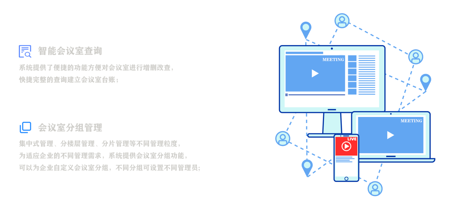 会议室预约— —对企业会议资源搜索查询、预约通知、状态显示、审批维修及人员服务等一体化会议管理