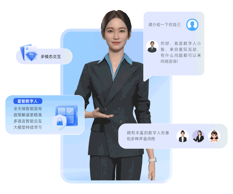 "星智大模型数字人--千亿级智慧,多模态交互,让未来触手可及!"